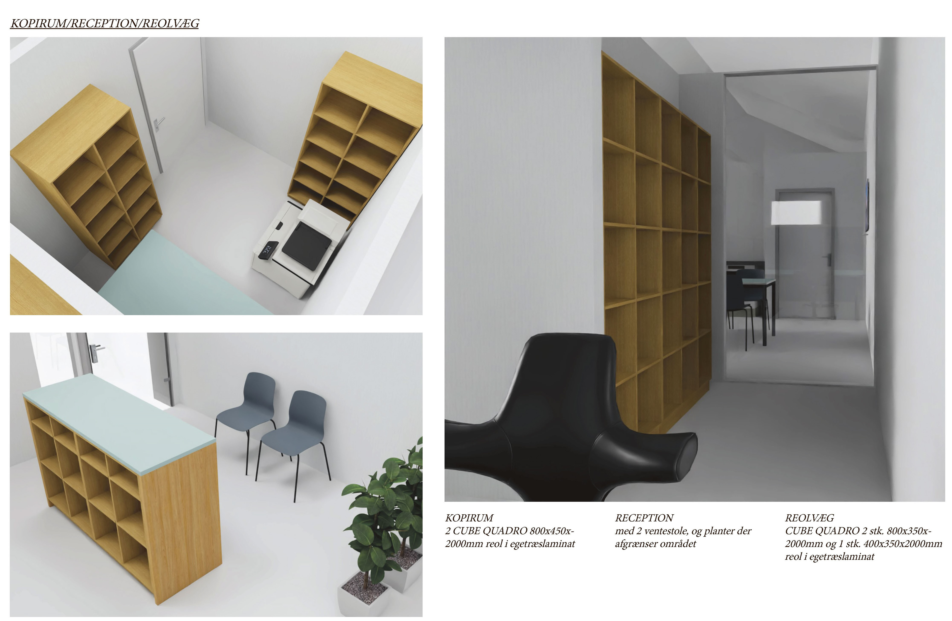 Indretning af nyt kontor til boligforeningen Albo, i Horsens. Projektet omhandler interiør af reception, kontor, og omklædning, og visualiserer farvevalg og kombinationer. Tegninger er lavet til KontorDesign.dk