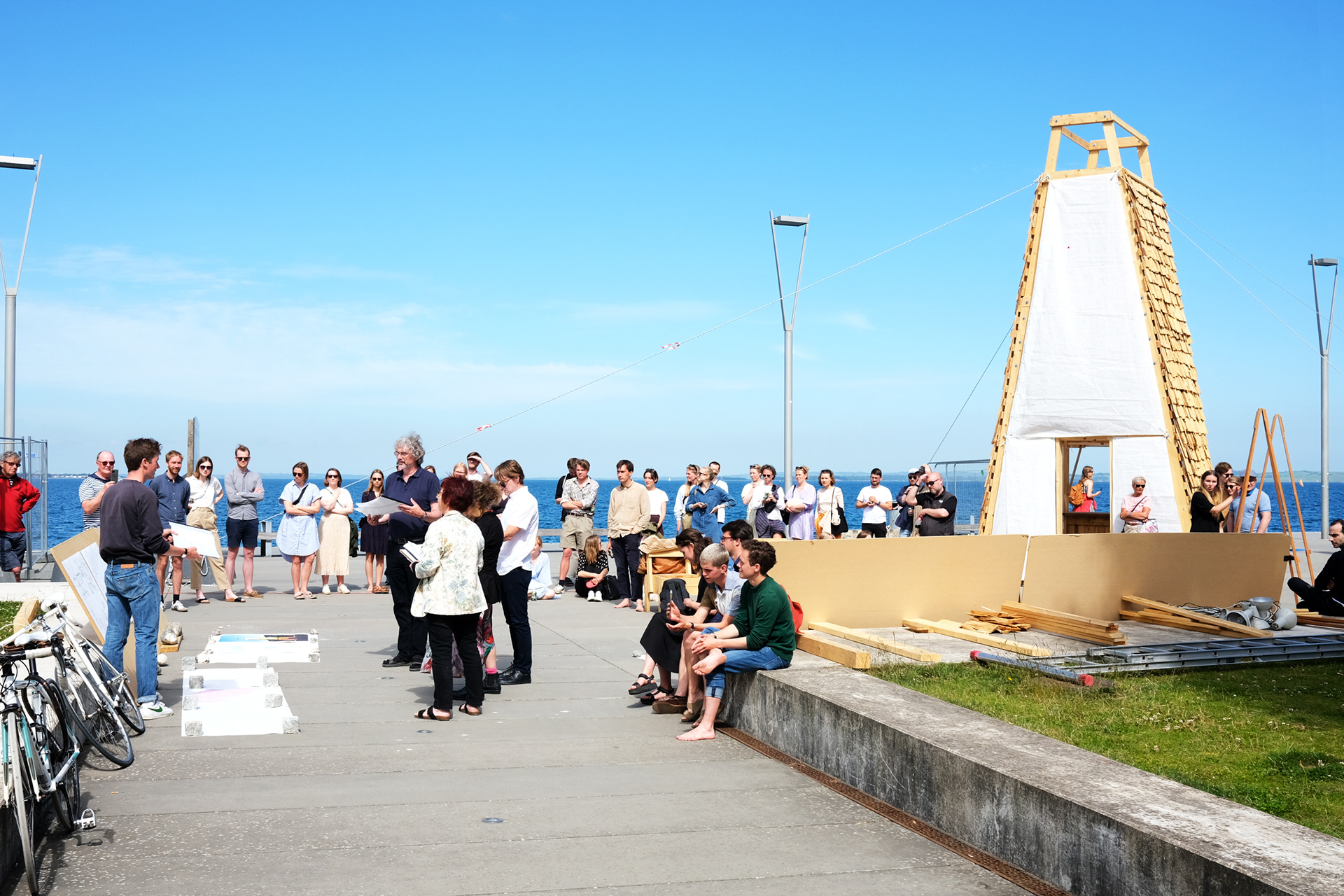 The lighthouse is a wooden tower made for my thesis at AARCH during the spring of 2021. The tower, and a raft with a bench, was placed on Aarhus Ø during the summer of 2021, being used by local sailors, swimmers and pedestrians.