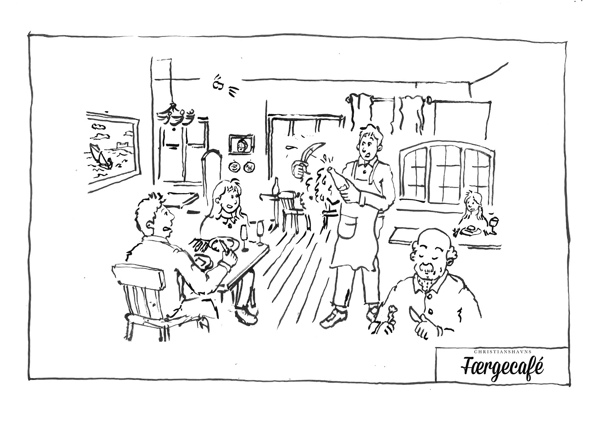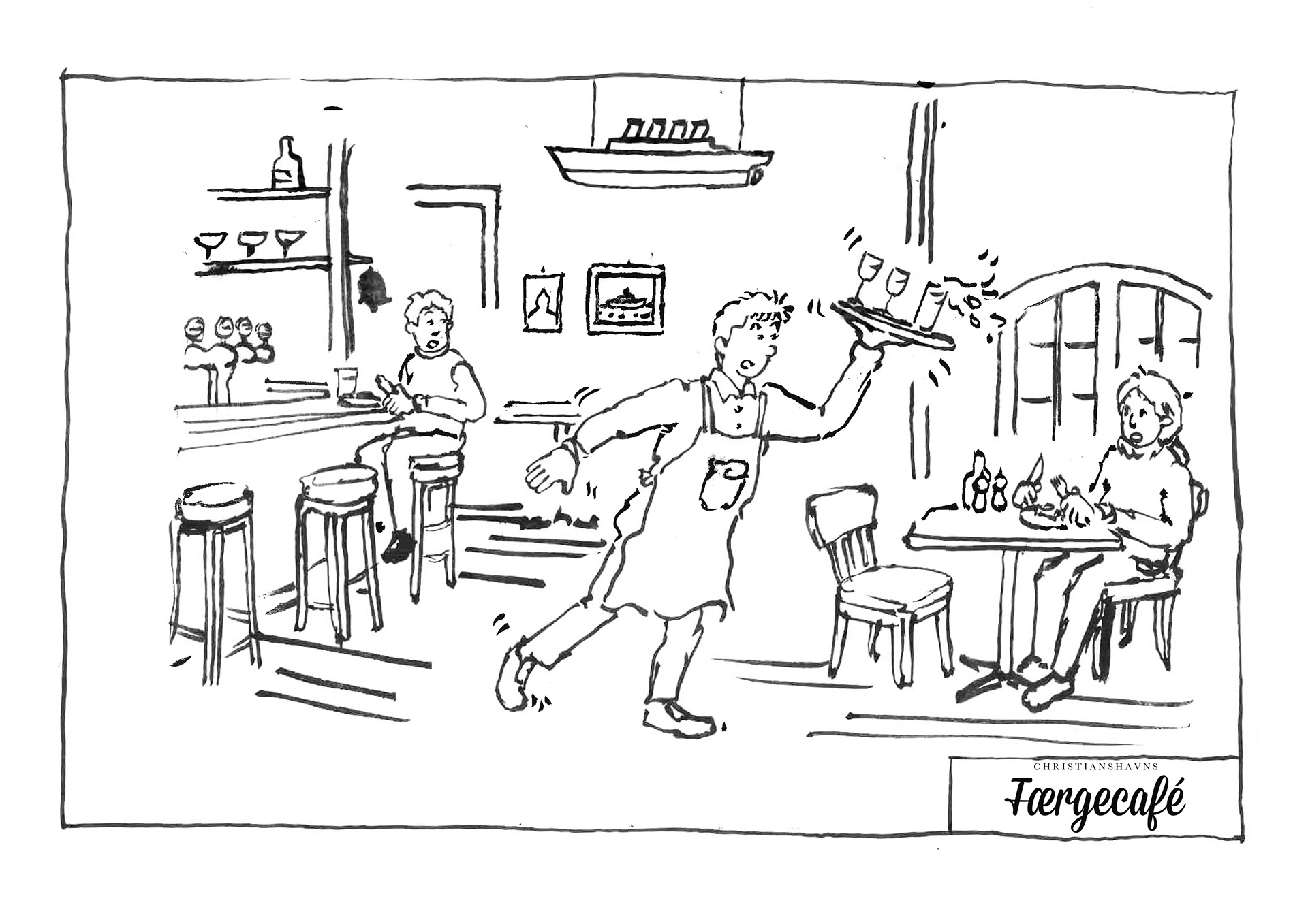Som tjener på Christianshavns "Færgecaféen" tegnede jeg disse, som restaurantens yngre gæster kunne farvelægge, mens de ventede på deres fiskefilet:)